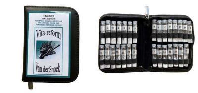 Testset van alle bij ons beschikbare VitaZouten in luxe lederen etui. Voor elk VitaZout is er een glazen buis gevuld met het betreffende zout in poedervorm. Ideaal voor gebruik in de biotensor etc.